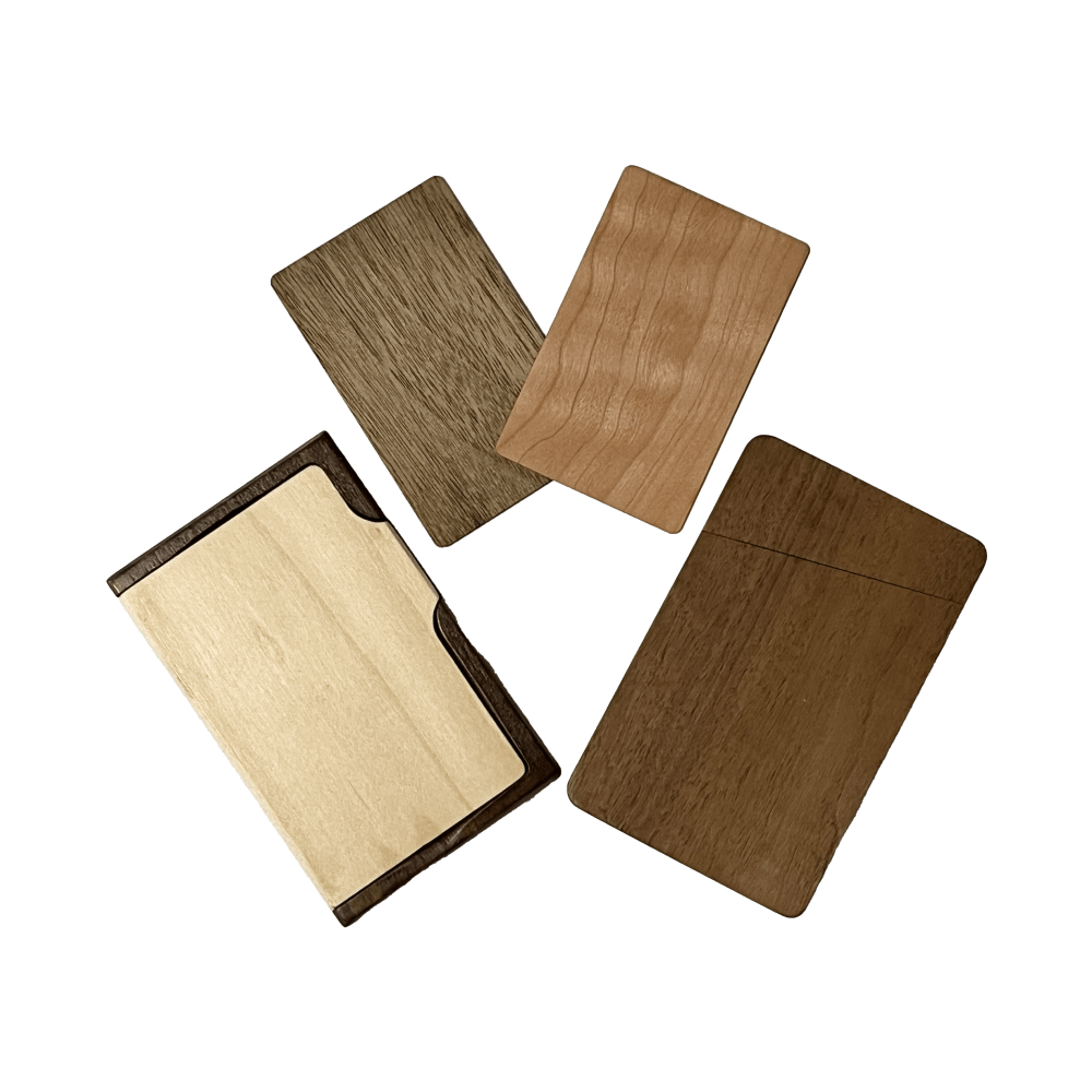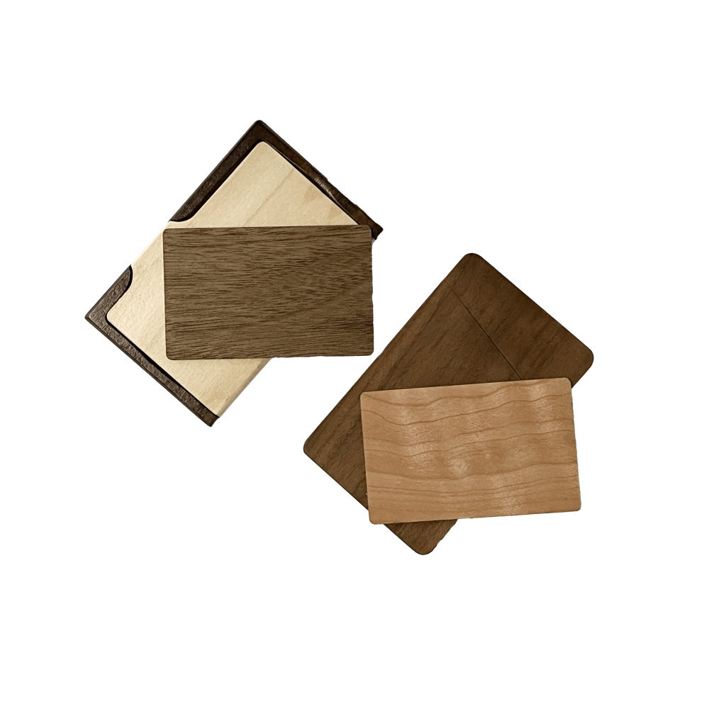 Minden kártya prémium minőségű fából készül, névvel és logóval gravírozva, így tökéletesen személyre szabható.