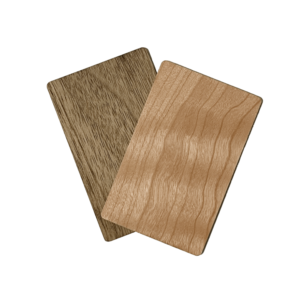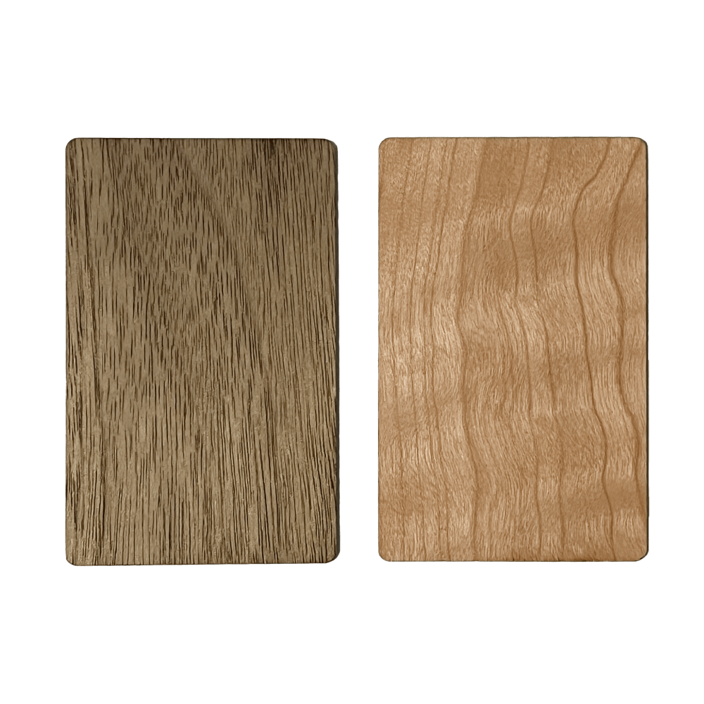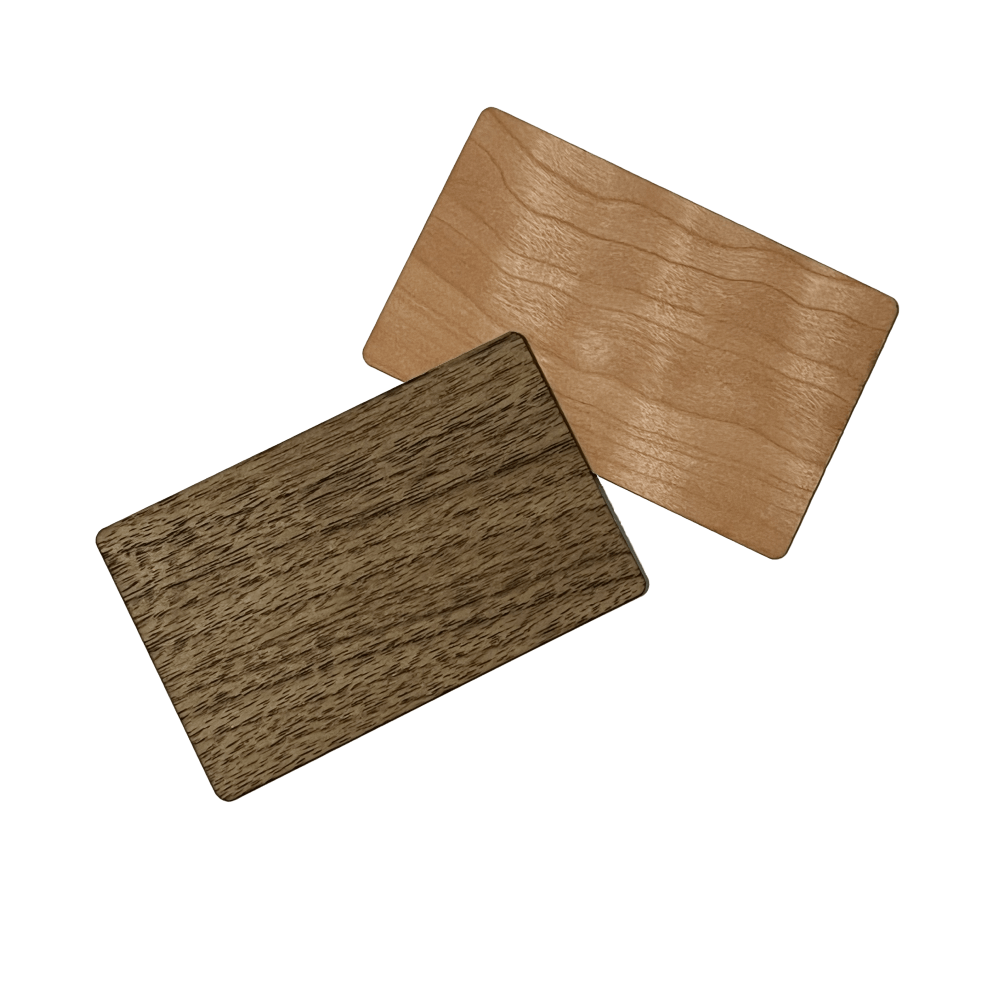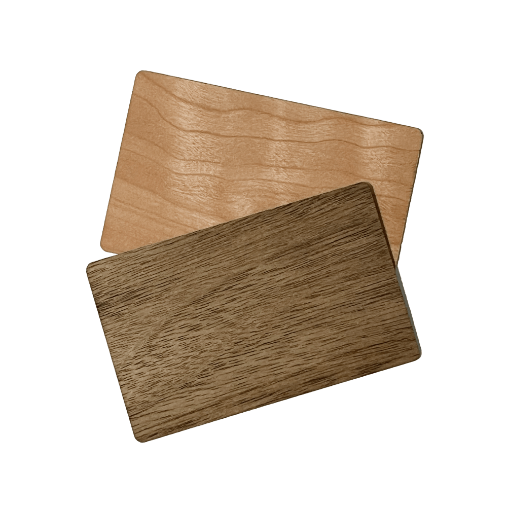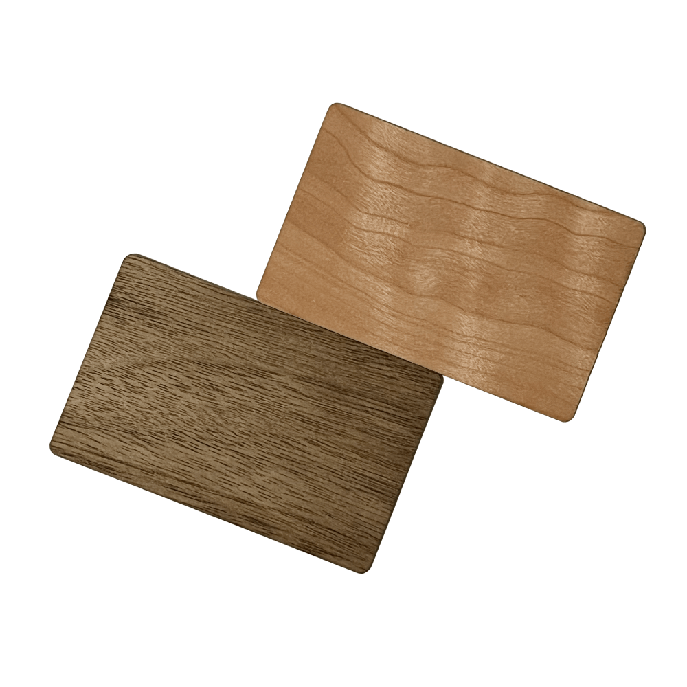A névjegykártya prémium minőségű fából készül, két választható árnyalatban, igény szerint gravírozzuk rá a nevét és logóját.